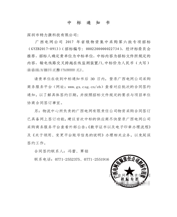The Sixth Batch of special bidding in Guangxi: transmission line crossing and on-line monitoring dev