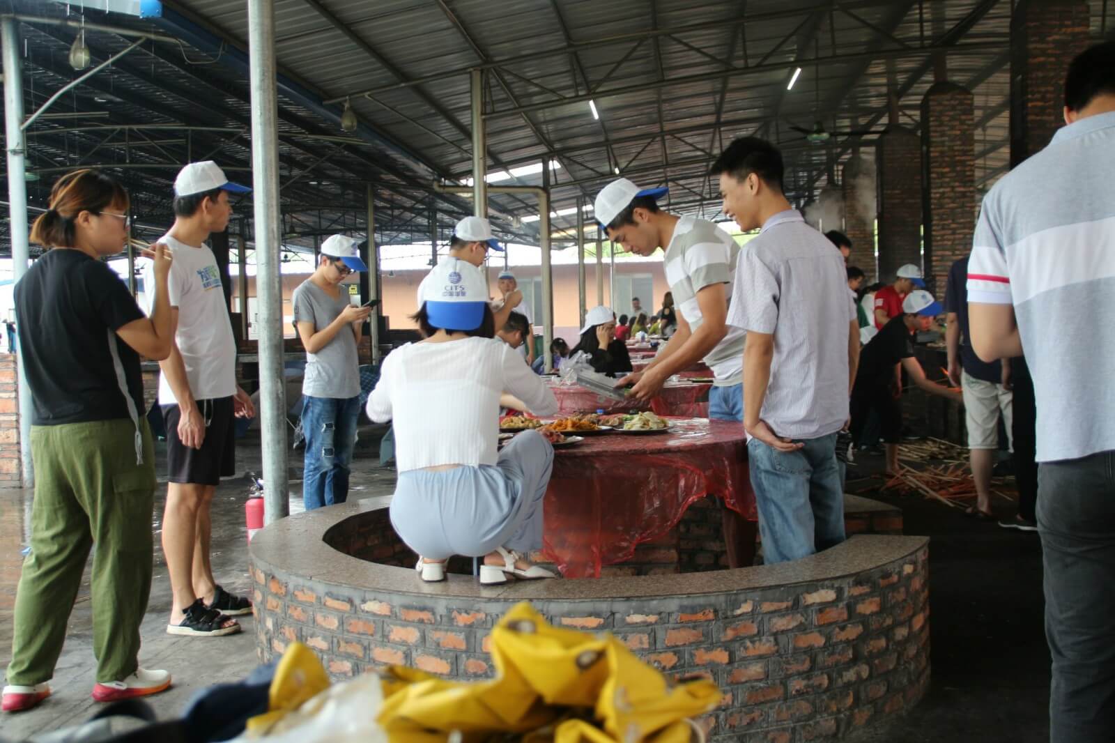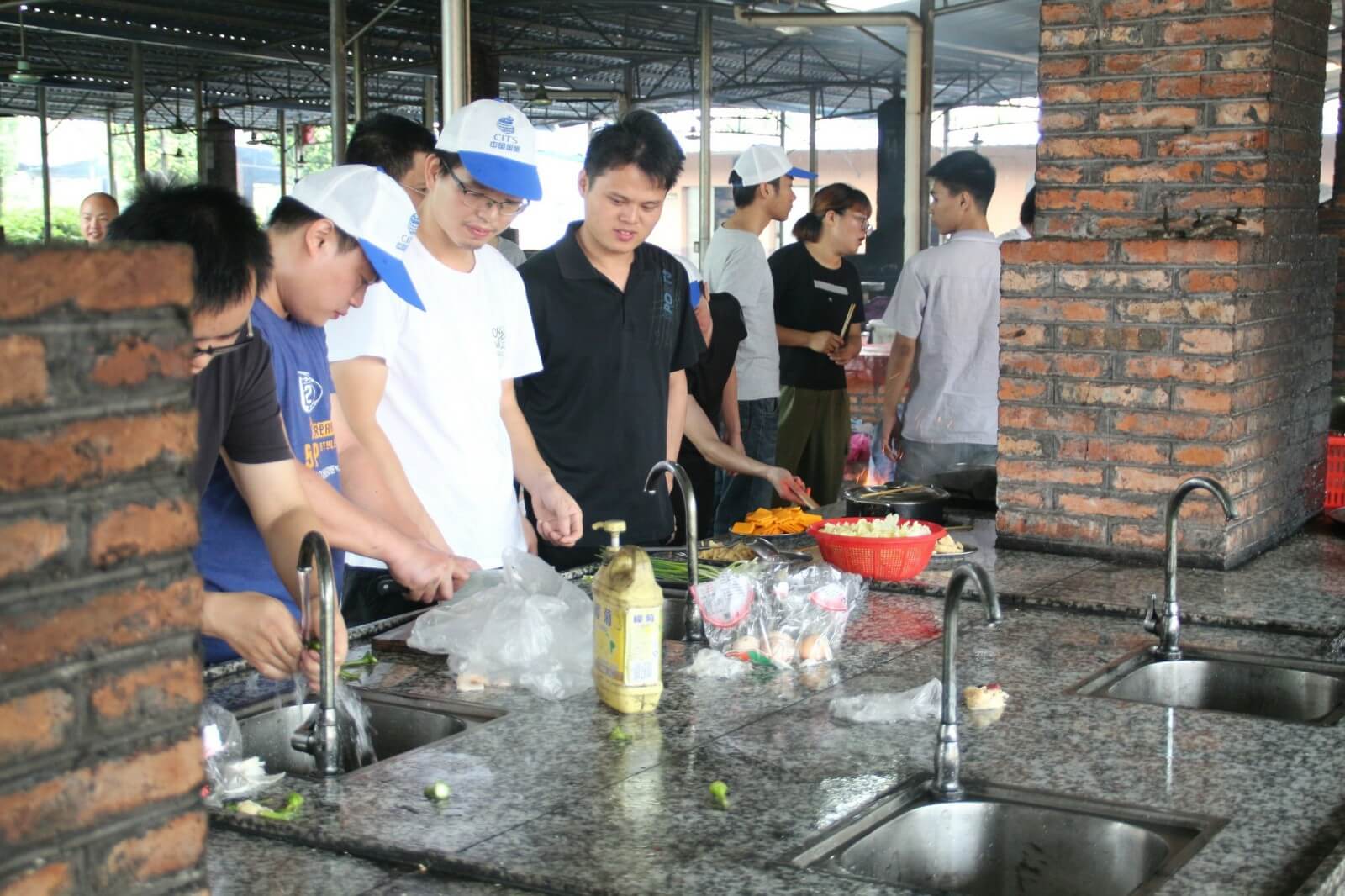 第三天,我們跟隨生物鐘醒來,相比前兩天,今天的活動(dòng)時(shí)間相對(duì)寬裕,早上九點(diǎn)多起來吃過酒店特意留的早餐我們啟程去往郊區(qū)野炊,野炊自給自足,一切吃的都要自己動(dòng)手在公司我們是職員現(xiàn)在我們是廚師大家都磨拳擦掌的行動(dòng)起來,洗菜的、掌勺的、打下手的、添柴火的,不一會(huì)兒一盤色香味俱全的菜擺在桌上沒多久桌上已經(jīng)是好幾道菜了有炒蛋、冬瓜湯、爆炒雞塊、南瓜片、炒青菜....,每道菜都富有不同的特色我拿起了手中的相機(jī),將這一刻留在了鏡頭之中,大家相互顯無比親近,雖然只有這短短的三天。