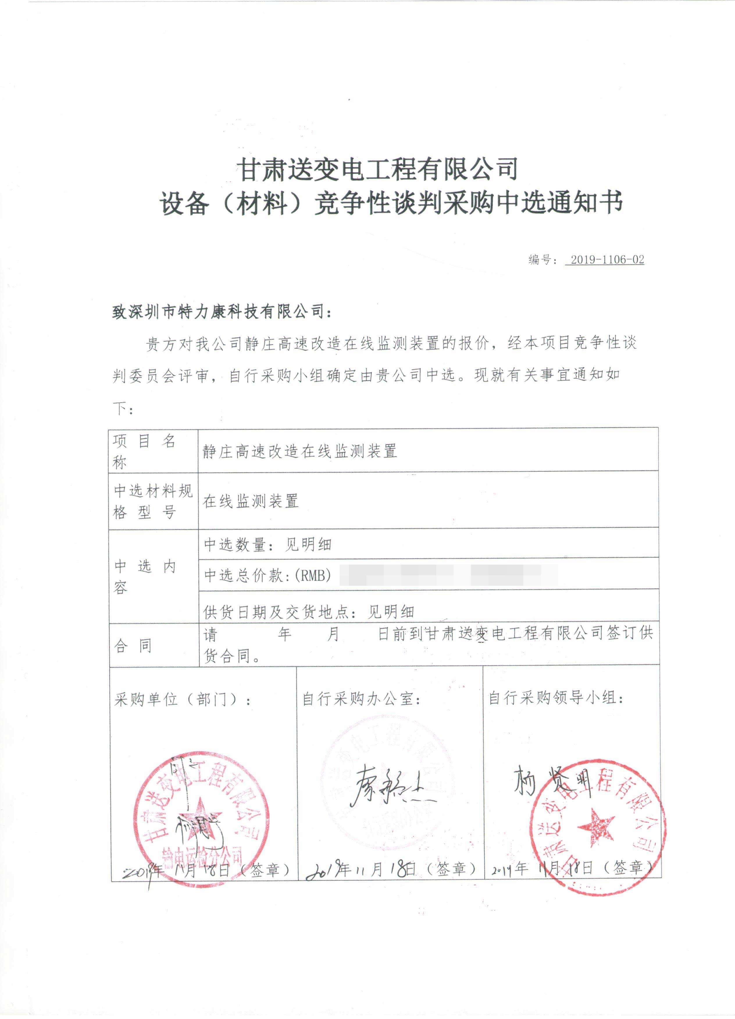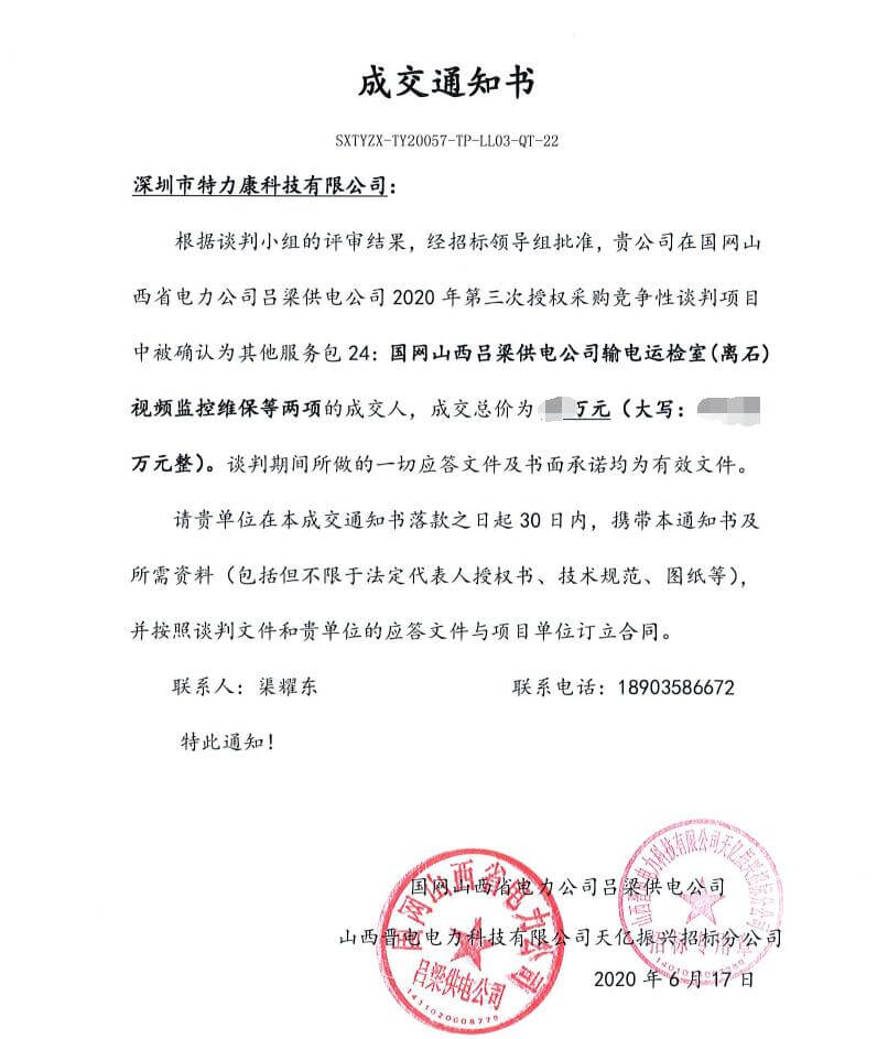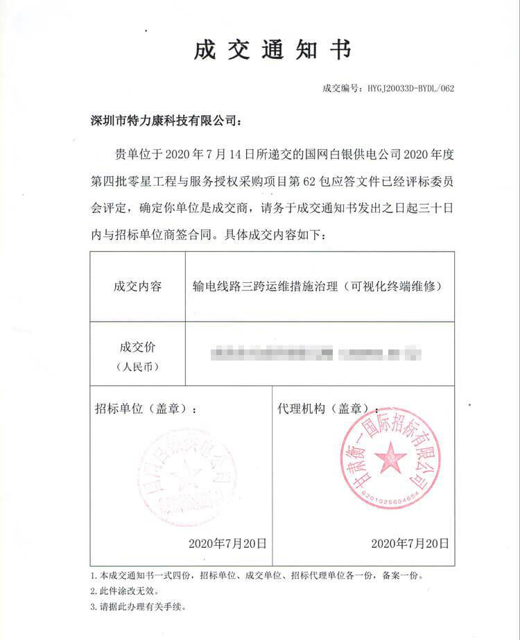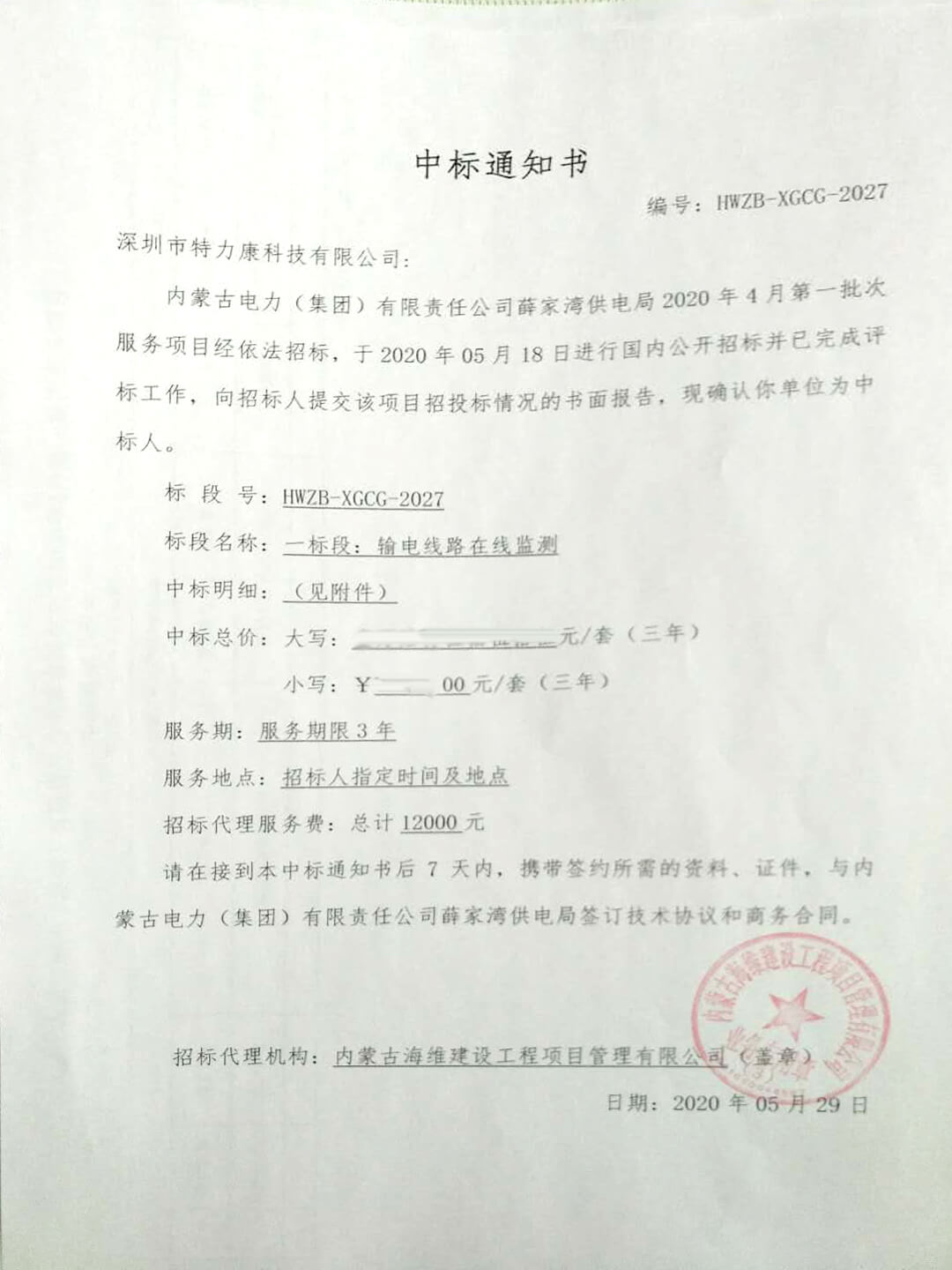 特力康中標(biāo)國(guó)網(wǎng)黑龍江送變電工程公司的2024年度第18次物資類(lèi)競(jìng)爭(zhēng)性談判采購(gòu)項(xiàng)目——慶陽(yáng)驅(qū)鳥(niǎo)器物資框 特力康中標(biāo)國(guó)網(wǎng)甘肅省電力公司省管產(chǎn)業(yè)單位2024年第五次物資競(jìng)爭(zhēng)性談判授權(quán)采購(gòu)項(xiàng)目 中標(biāo)喜訊:深圳市特力康科技有限公司成功入圍許繼集團(tuán)綜合能源公司輸電線路視頻在線監(jiān)測(cè)裝置模塊集采項(xiàng)目 中標(biāo)喜訊:特力康成功中標(biāo)國(guó)網(wǎng)重慶市電力公司渝中一片區(qū)項(xiàng)目 特力康成功中標(biāo)國(guó)網(wǎng)天津市電力公司2024年第二次?物?資招標(biāo)項(xiàng)目 特力康中標(biāo)國(guó)網(wǎng)安徽省電力有限公司蕪湖供電公司2024年3月非物質(zhì)采購(gòu)項(xiàng)目 四川電力用特力康架空輸電線路山火監(jiān)測(cè)裝置,筑牢林區(qū)輸電 “防火墻”? 遼寧電力啟用特力康多視角監(jiān)拍裝置,全維度守護(hù)輸電安全? 破解黃土高原沉降難題:山西電力用特力康北斗裝置守桿塔安全? 山東電力啟用特力康動(dòng)態(tài)版智能激光驅(qū)鳥(niǎo)器,動(dòng)態(tài)防控守護(hù)變電站安全? 湖南超高壓電力啟用特力康球機(jī) AI 監(jiān)測(cè)裝置,智能守護(hù)輸電通道安全? 廣西電力啟用特力康高壓電纜護(hù)層環(huán)流監(jiān)控設(shè)備,筑牢電纜安全防線? 山東電力用上特力康綜合驅(qū)鳥(niǎo)器,多手段守護(hù)變電站安全? 陜西電力啟用特力康智能預(yù)警系統(tǒng),多維監(jiān)測(cè)守護(hù)輸電安全? 寧夏配電線路安裝了我司防外破電子化智能警示牌